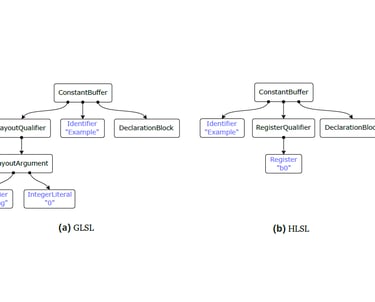 For my master thesis, I explored various approaches to cross-compile shading languages to target many platforms from a single source of shader code. I focused on AST transformations and compared it to other methods such as bytecode disassembling, intermediate representations such as SPIR-V, material pipelines, and source preprocessing.