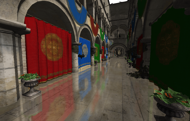 Based on the poster of the same name for SIGGRAPH'14, I wrote my bachelor thesis about combining traditional screen-space reflections with cone-tracing to efficiently render glossy reflections that can be easily integrated into existing graphics pipelines for global illumination.